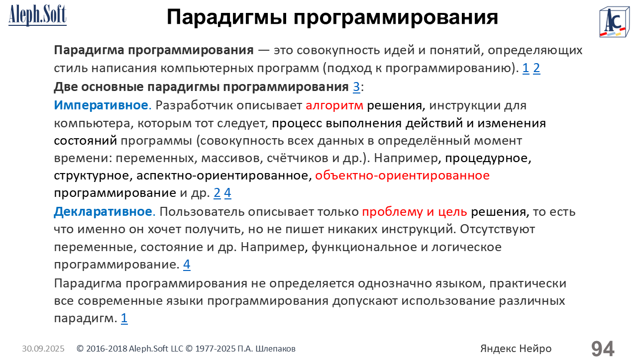 Aleph-cube 9-5-2: Информационные системы и IT технологии в нефтегазовой отрасли. Единый подход. Российский государственный геологоразведочный университет (МГРИ). Нефтегазовый факультет. Раздел 2. Математические понятия и термины в ИТ. Парадигмы программирования. Методы оптимизации. Решатель Алеф-куб. Стандарты в математике. 2025.
