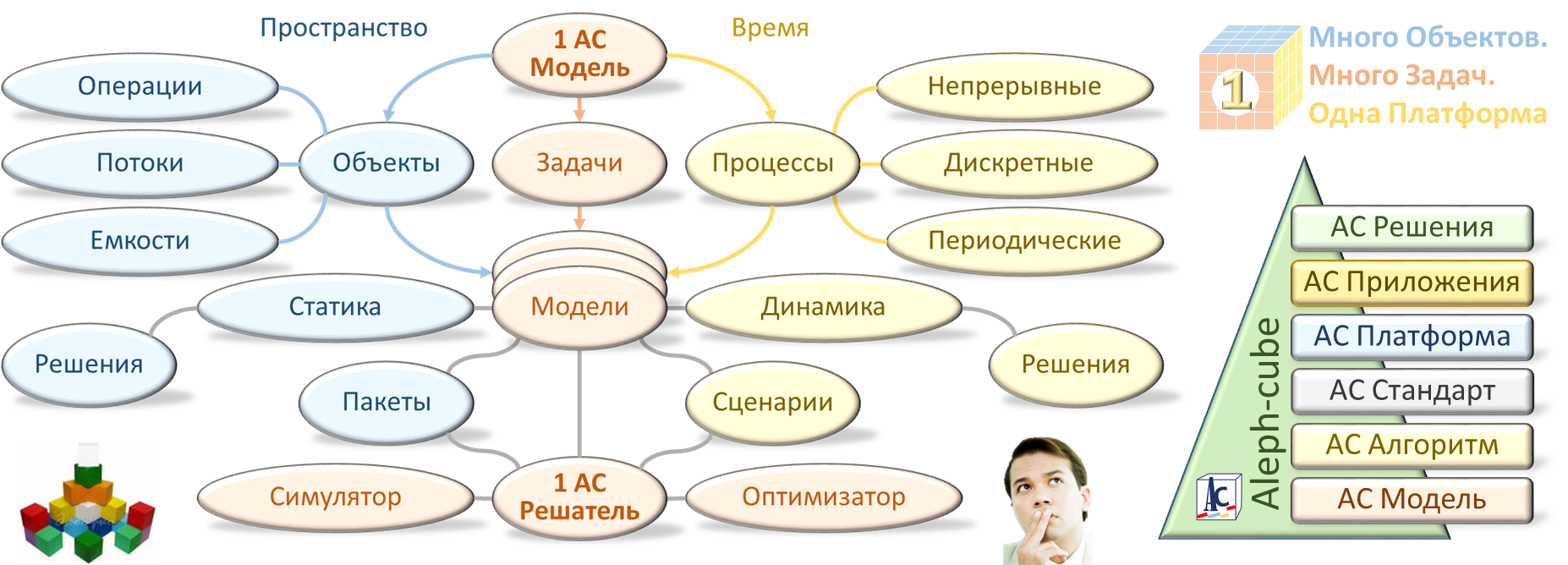 Алеф-куб: Все задачи оптимизации жизненного цикла предприятия опираются на одну и ту же Единую модель, и при обновлении модели актуализируются одновременно.