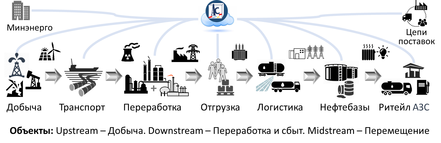• от отдельного процесса, участка, цеха, завода, нефтебазы, морского терминала до нескольких заводов, цепочек поставок, вертикально интегрированных компаний;